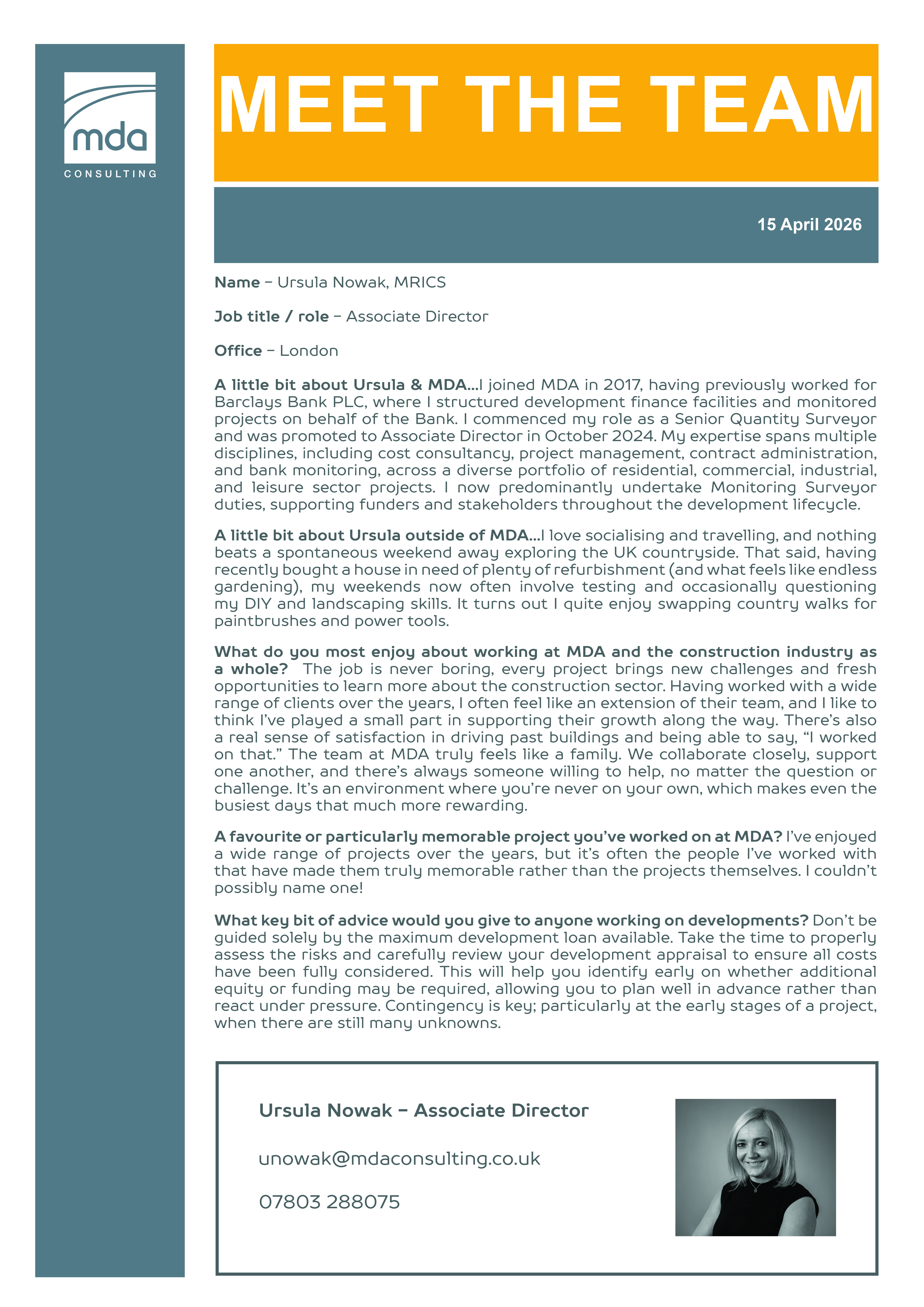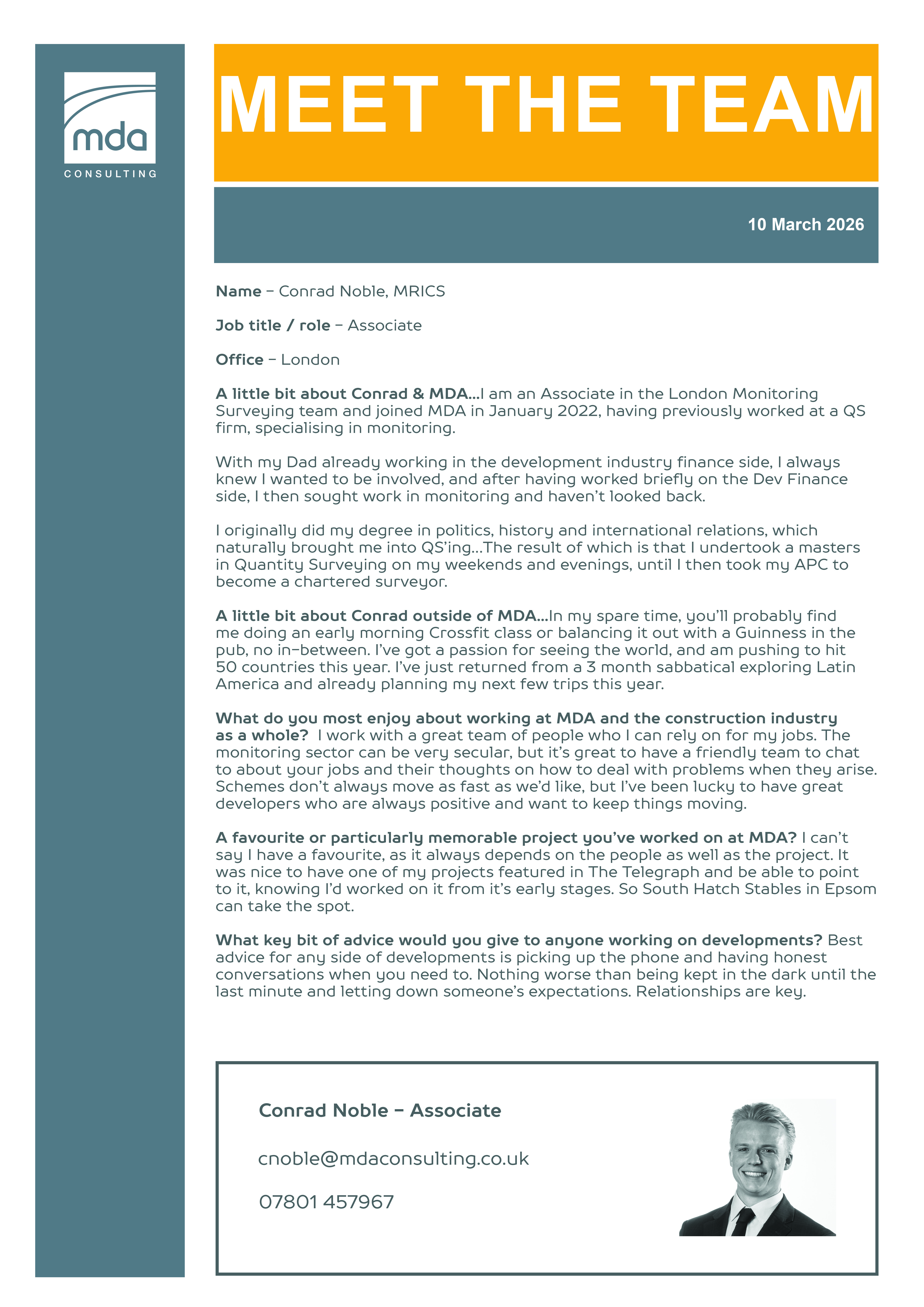 Another in our regular series of Meet the Team updates
